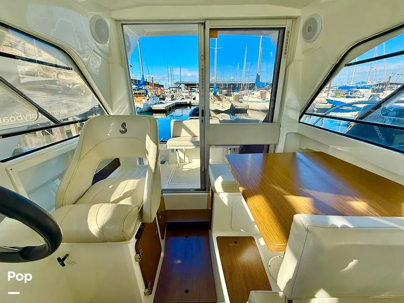 A large sliding door opens into a bright and airy cabin surrounded by panoramic glazed windows, providing exceptional visibility and ventilation. Powered by a reliable and efficient Mercury 150 HP engine, this nearly new Antares 7 delivers smooth, confident handling with impressive fuel economy -- perfect for long days exploring or cruising the Puget Sound.
