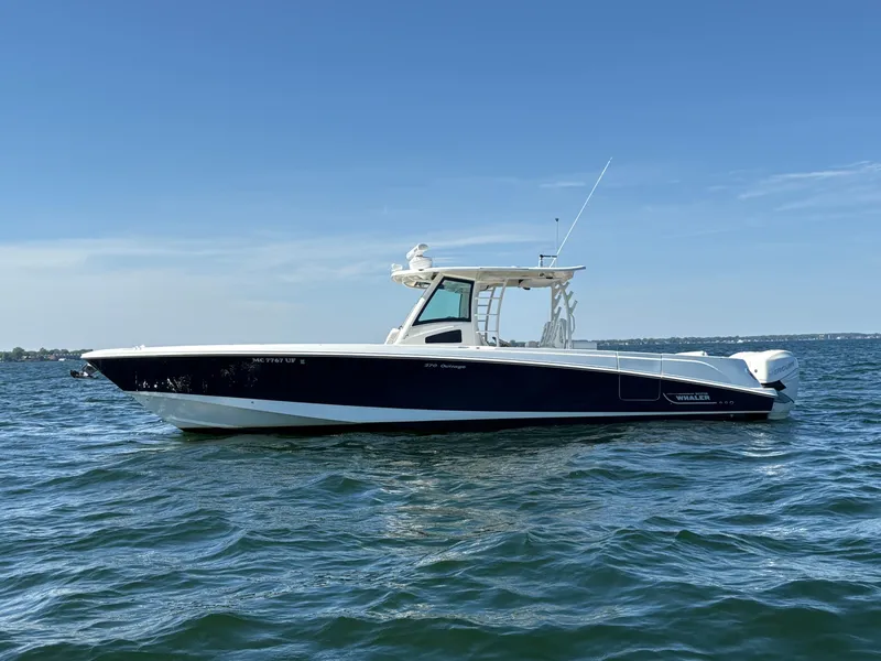 Introducing the 2014 Boston Whaler 370 Outrage, a remarkable freshwater fishing vessel with an overall length of 40 feet. This used boat features a robust fiberglass hull with a Deep Vee shape, ensuring stability and performance on the water. Equipped with three powerful Mercury DTS Verado FourStroke outboard engines, each delivering 300 hp, it promises exhilarating speed and efficiency, perfect for avid anglers. Designed for comfort and convenience, the boat accommodates one cabin and one head, making it ideal for extended outings. With a generous seating capacity of 16, it's perfect for gatherings with family and friends. The inclusion of advanced features enhances the overall experience, ensuring you can navigate with ease. This Boston Whaler is a blend of performance, comfort, and style, making it an excellent choice for those seeking adventure on the water.
