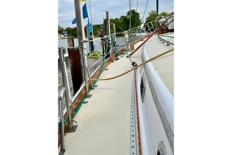 Combined with her shoal draft, the heavier displacement hull form provides great interior volume, a comfortable motion at sea and access to shallow cruising ground normally limited to much smaller yachts. Her quality of construction cannot be matched on today's market; she is a blue water cruiser; she is a very competent performer and has beautiful lines. With her centerboard she is as comfortable sailing to the Azores as she is in the Bahamas. She is a solid ship and one that is easy to handle, solid, comfortable, classy and reliable underfoot. She feels safe...