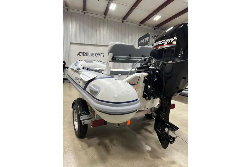 Introducing the stunning 2026 Highfield Classic 380, a new rigid sports inflatable boat that promises exhilarating adventures on the water. With a nominal length of 12.5 feet, this sleek vessel is designed for performance and agility. The aluminum hull, shaped as a RIB, ensures durability and stability, making it perfect for both leisure and sport. Powered by a robust 30 hp Mercury outboard engine, the Classic 380 offers impressive acceleration and responsiveness, ideal for those seeking thrills. Its modern design is complemented by thoughtful features, ensuring a comfortable experience on board. This boat is a fantastic choice for water enthusiasts looking for a reliable and stylish option. Whether you're cruising around the islands or heading to the beach, the Highfield Classic 380 is ready to elevate your boating experience. Embrace the open water with confidence and style in this remarkable Highfield.