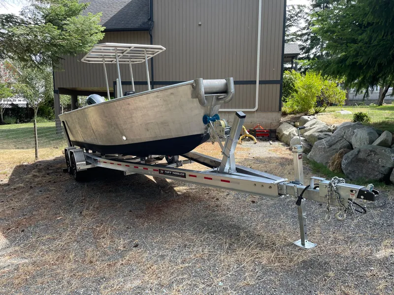 This boat comes on a 2024 tandem axle aluminum I-beam Tuff trailer, along with a 2022 Yamaha 150 with approximately 100 hours of use and a 2024 Yamaha 9.9hp.