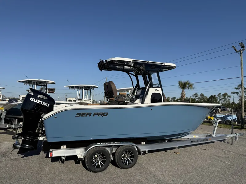BRAND NEW 2026 SEAPRO 242 DLX WITH SEA KEEPER TRIM TABS AUTO LEVELING TABS SUZUKI 300 UPGRADED STEREO WITH SUB AND AMP DLX LEANING POST SIMRAD NSX12 VHF RS20 FRESH WATER SHOWER AND MUCH MORE