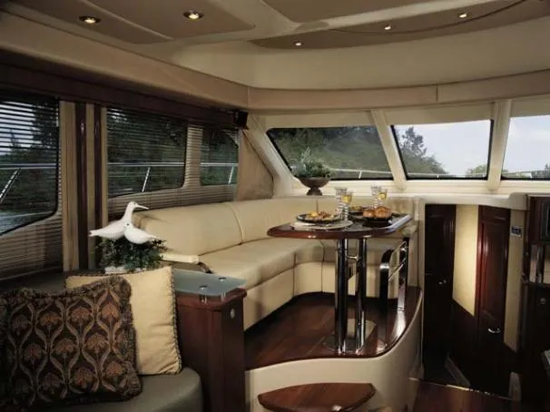 The Sea Ray 52 Sedan Bridge is so beautifully designed and fully equipped, it's virtually in a class all its own. Outfitted with a fiberglass hardtop, Isenglass enclosure and optional bridge air conditioning, this impressive yacht demands attention wherever it goes. Elegant features include wood flooring, fully adjustable thigh-rise helm seating, master and port staterooms with flatscreen TVs and two full head compartments with separate showers.