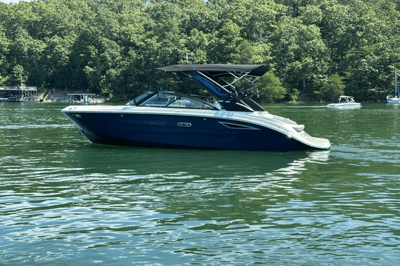- Color Scheme: Features a bold Sea Ray Blue Hull Side Color with a Black Hull Bottom.