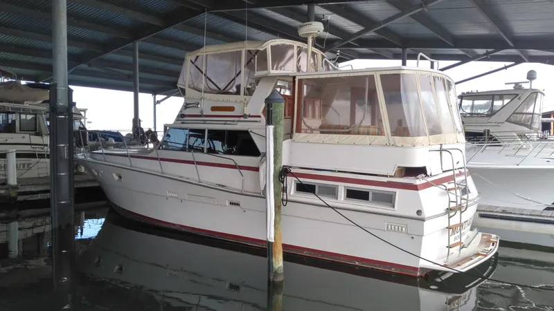 This very well maintained 43 had given the owners years of pleasure with their family and friends. They are in their 80's and have no time to use the boat. She is diesel powered and has some up-dated electronics. The boat currently shows well and is in need of new owners to make new memories. The owners also own the slip, that is also available for purchase.